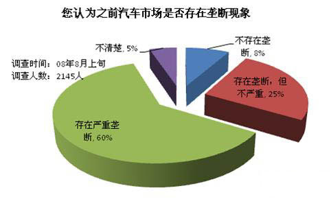 調查結果顯示,60%的消費者認為之前的汽車市場存在嚴重壟斷,25%的消費者認為之前的汽車市場存在壟斷,但是情況不嚴重。汽車市場長期存在著各種“潛規(guī)則”,《反壟斷法》的實施無疑讓汽車行業(yè)感受到了政策層面的沖擊。其中最重要的是經(jīng)銷商與汽車制造商之間的“不平等條約”將面臨巨大挑戰(zhàn)。