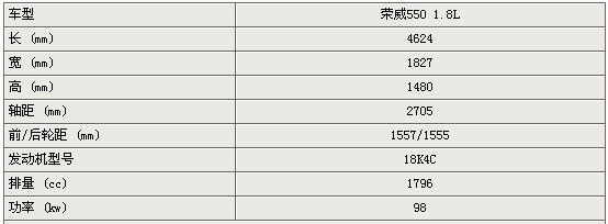 榮威550 1.8L參數(shù)曝光 廣州車展將發(fā)布