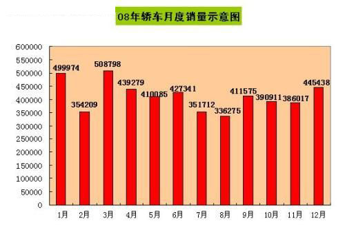 當(dāng)然,今年有太多不可預(yù)期的因素影響了整個(gè)車市的發(fā)展,從年初的雪災(zāi),年中的地震、奧運(yùn)會(huì),到年底全球性的經(jīng)濟(jì)危機(jī)。面對(duì)嚴(yán)峻的經(jīng)濟(jì)形式,國(guó)家出臺(tái)了燃油 稅等利好政策,并率先出臺(tái)了汽車也的振興計(jì)劃,對(duì)汽車銷量有明顯的刺激,相對(duì)11月44萬(wàn)的銷量探底,下滑高達(dá)10.78%,12月乘用車銷量51.2萬(wàn) 輛,增幅達(dá)到6.8%,這無(wú)疑是政策刺激起到的作用。