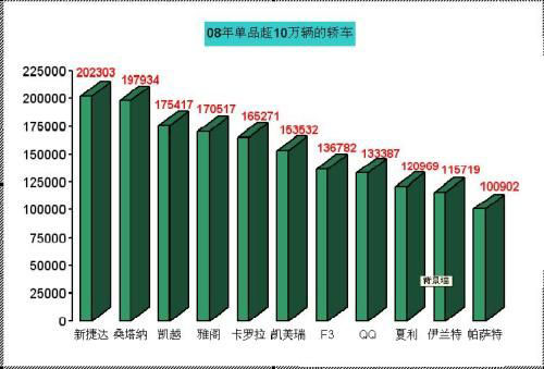 新捷達(dá)、桑塔納、凱越、雅閣、卡羅拉、凱美瑞、F3、QQ、夏利、伊蘭特、帕薩特瓜分了全 年單品牌銷量的前10位,銷量全部在10萬(wàn)輛以上。前10名中只有卡羅拉、雅閣、F3分別實(shí)現(xiàn)同比增長(zhǎng)151%、44.5%、38.9%,新捷達(dá)、QQ實(shí) 現(xiàn)小幅增長(zhǎng)外,其余車型均呈現(xiàn)了下滑趨勢(shì)。不變的是面孔,08年上市了大量的新車型,我們寄托09年能夠改變。