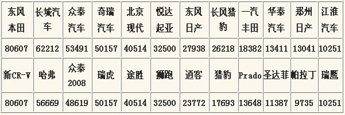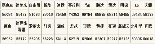 銷量5萬(wàn)以上車型數(shù)據(jù)列表