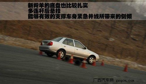 新羚羊的底盤系統(tǒng)比較成熟、扎實,多連桿后懸掛能夠支撐車輛在緊急并線時所帶來的側(cè)傾。但新羚羊的輪胎抓地能力略遜于夏利N5,在同樣的速度通過時,輪胎會出現(xiàn)輕微的打滑現(xiàn)象,穩(wěn)定性略有瑕疵。