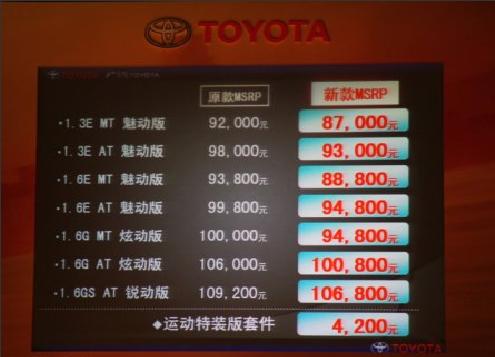 2010年9月19日,廣汽豐田在廣州發(fā)布升級(jí)改款的新雅力士,推出1.3E魅動(dòng)版手動(dòng)擋和自動(dòng)擋、1.6E魅動(dòng)版手動(dòng)擋和自動(dòng)擋、1.6G炫動(dòng)版手動(dòng)擋和自動(dòng)擋、1.6GS銳動(dòng)版自動(dòng)擋等共7款車型,廠家建議零售價(jià)為:8.7萬(wàn)元到10.68萬(wàn)元。自即日起,新雅力士在全國(guó)正式上市。