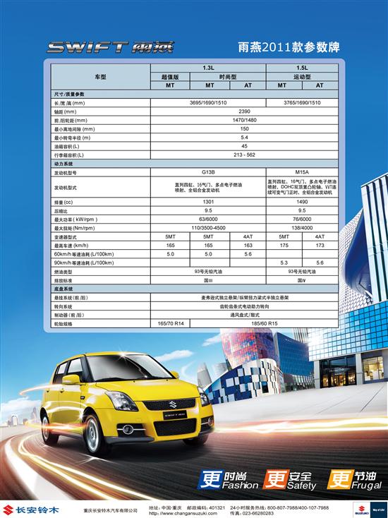 | 雨燕 2011款 | 1.3L | 超值版MT | 59,800 |