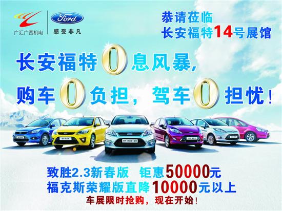 (廣西汽車網(wǎng) 訊)12月1日至5日,2011中國—東盟第四屆南寧國際汽車展覽會在會展中心舉行。在此期間,廣匯廣西弘嘉購車鉅惠活動也開始啦!這時候買什么車最實惠?當然首選長安福特!這時候去哪里看車,當然是14號展廳!