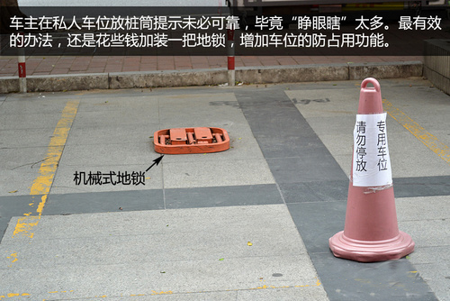 解決方法:指望物管人員幫忙看管私人車位顯然不切實(shí)際,車主可在自己的車位上擺放樁筒等障礙物,以防止他人占用;最有效的方法還是加裝一把地鎖,雖然投入較大,但效果最好。當(dāng)然,要徹底消除這種行為,就需要車主們自覺,不占用私人車位,從自身做起,顧己及人。
