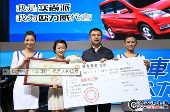 據(jù)長安商用相關(guān)負責人介紹,歐力威“十萬日薪”征代言人活動是長安商用針對歐力威目標消費群體而獨創(chuàng)的市場營銷活動。因為歐力威實尚動車的產(chǎn)品屬性與“實尚派”即時尚又講究實際的理性消費觀念十分吻合。長安商用希望能借此活動遴選出最能代表歐力威實尚精神的代言人。2013年3月初,歐力威“十萬日薪”征代言人活動正式啟動。經(jīng)過近1個月的選拔,由幾十萬粉絲共同評選,最終歐力威形象代言人從699名參賽選手中選脫穎而出。