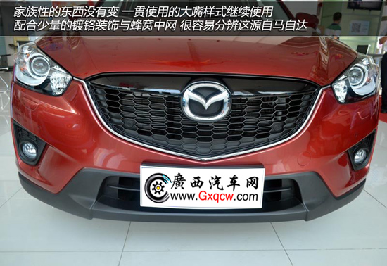 馬自達式盾形中網(wǎng)(蜂窩狀配合鍍鉻材質(zhì))、炯炯有神的大燈、模擬進氣口式的霧燈構(gòu)成了前臉,這種簡約主義,在當下是很流行的。