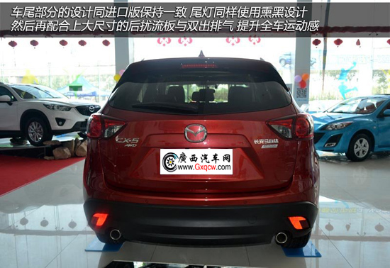 馬自達尾部富有變化和充滿現(xiàn)代氣息的線條的顯得十分華麗,黑色下護板對尾部視覺效果有提拉作用,讓車尾變得扁平,反而有點兩廂車的味道。CX-5尾部還配備了倒車雷達和影像功能,增加了安全功能。