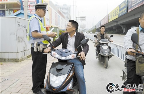 希望廣大電動(dòng)自行車駕駛?cè)伺笥褌冄杆傩袆?dòng)起來,從自身做起,從每次交通出行做起,人人爭當(dāng)守法標(biāo)兵,人人爭做文明使者,自覺抵制交通違法,摒棄駕駛陋習(xí),共同營造良好的城市交通環(huán)境,為打造充滿活力的“花樣南寧”,建設(shè)城市美好家園貢獻(xiàn)力量。