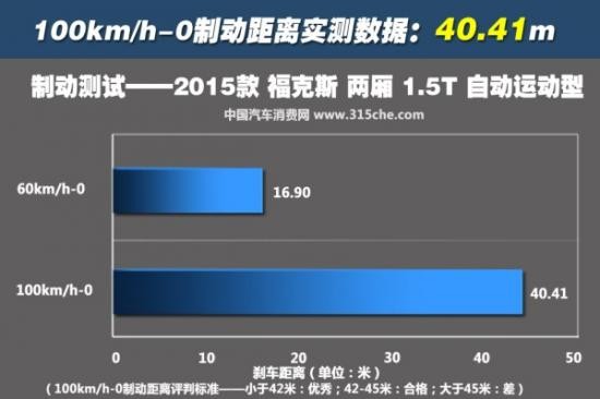 全力剎車時,新款?怂骨皯覊嚎s明顯,除了偏重的車頭以外,偏于舒適性的調校也是其中的原因之一。初段制動力較強,后期剎車力度有些偏軟,總的來說還算平均,最終得到40.41米的剎車距離,是個不錯的成績。