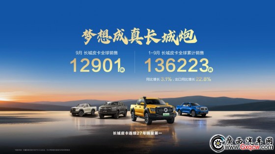 日前,長城皮卡公布9月銷量數(shù)據(jù),長城皮卡9月全球銷售12901輛。1-9 月,長城皮卡全球累計(jì)銷售136223輛,同比增長3.1%。國內(nèi)終端市占率近50%,中國每賣出兩臺(tái)皮卡,就有一臺(tái)是長城。1-9月,海外累計(jì)銷售46068輛,同比增長22.8%,其中9月銷售5437輛。