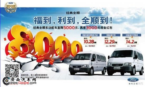 春季購車旺季襲來,廣大朋友們開工的號角已經吹響。羊年**炮,福到,全順到,讓您夢想揚帆起航!福特全順史上最給力的優(yōu)惠活動來啦!即日起至3月31日購買福特全順明星車款即可享受8000元現金優(yōu)惠!準備好了嗎?快快行動吧!經銷商熱線:0771-3119811.