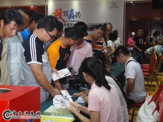 訂車風云旁訂單直線上升,最終成功現(xiàn)場訂車41臺,隨之江鈴客戶朋友陸續(xù)領取簽到禮品。