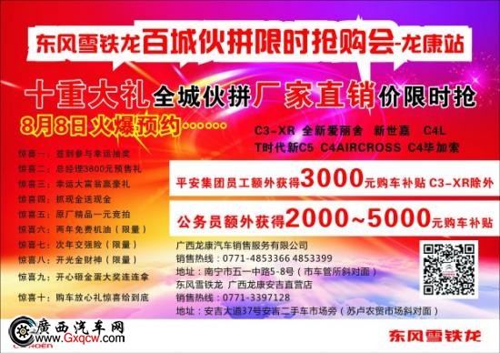 廠價風暴 東風雪鐵龍百城伙拼搶購會——登陸南寧。