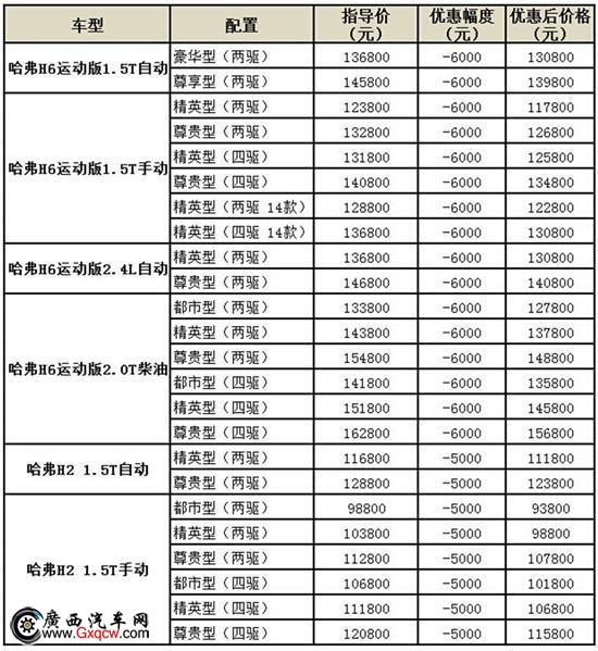 哈弗H6運動版/哈弗H2優(yōu)惠價格表